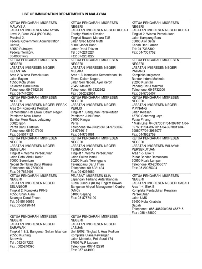 . 54m Sheema beauty seberang jay. 730 pagi 330 petang. Kuala Lumpur Immigration Office.